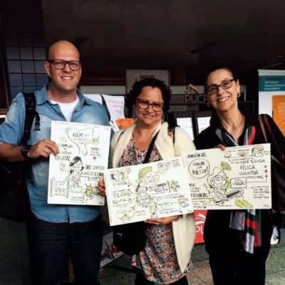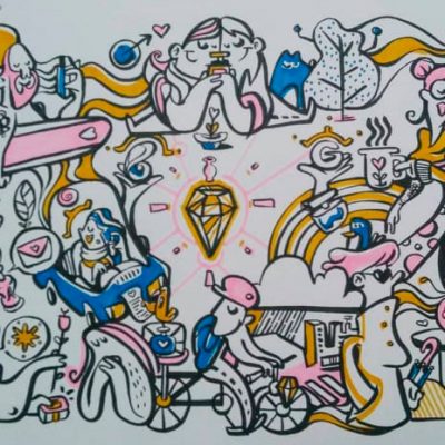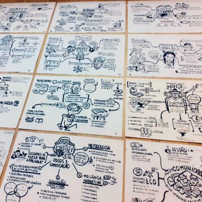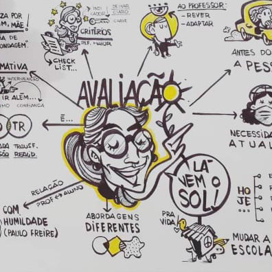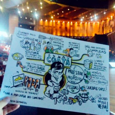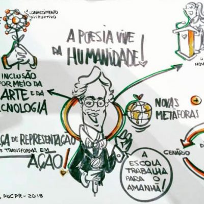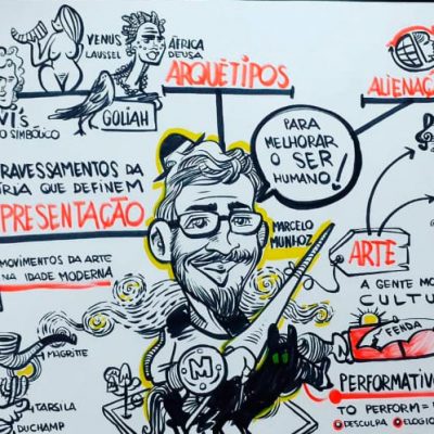 A Facilitação Visual é feita em tempo real sintetizando visualmente tópicos apresentados em palestras, workshops, planejamentos, treinamentos, etc. Processo também conhecido como Mapa Mental ou Design Thinking.